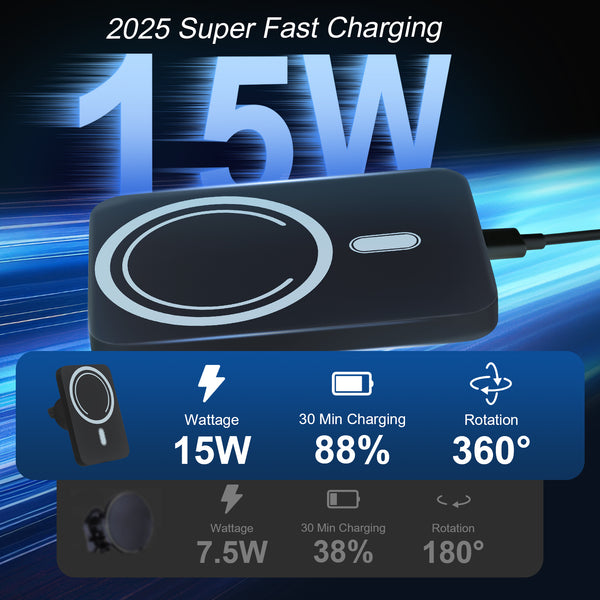 Wireless Car Charger,15W Fast Charging Car Mounts, 360¡ãAdjustable Magnetic Car Phone Charger for iPhone 17/16/15/14/13/12 Series Air Vent Phone Holder
