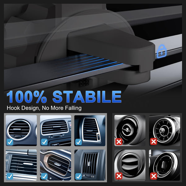 Stable Vent Mount: strong vent clip and support arm provide enhanced mounting stability