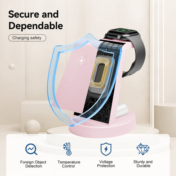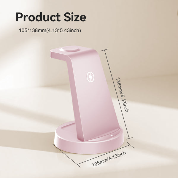 Wireless Charger for iPhone, 3 in 1 Charging Station Compatible with iPhone 17 to 12, Compatible with iWatch Series, Compatible with Airpods 4 3 2 Pro, Pink
