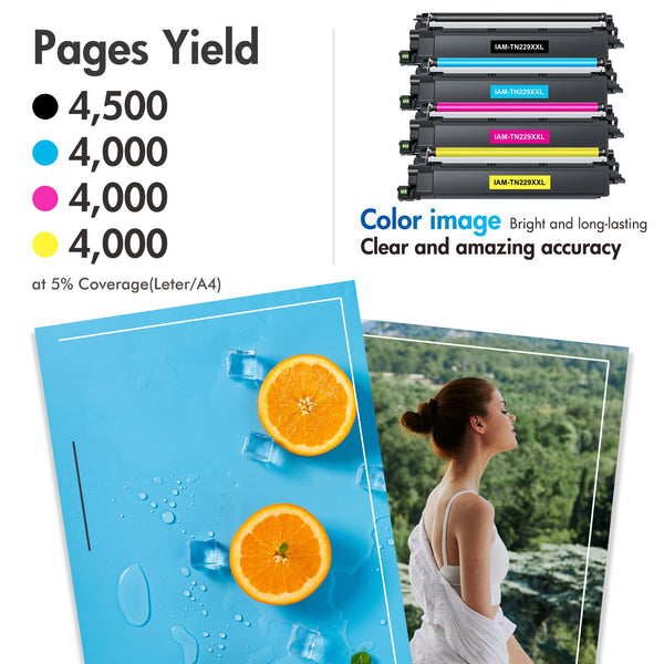 - Est Page Yield : 4500 Pages Per TN229XXL Black Toner and 4000 Pages Per TN229XXL Color Toner
