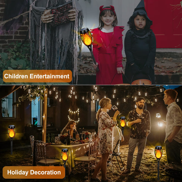 - Easy Installation:The solar powered halloween flickering flame light are easy to install. No wiring required. Simply install the torch solar lights anywhere you like and enjoy the safe flame and ambiance! It is solar-powered, please install it at the place where can get direct sunlight.