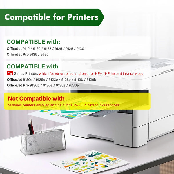 • [Compatible Models]: Compatible for HP OfficeJet 9120 9122e; OfficeJet Pro 9110b,9125e,9128e,9130b,9135e; OfficeJet Pro Wide Format 9730 9730e