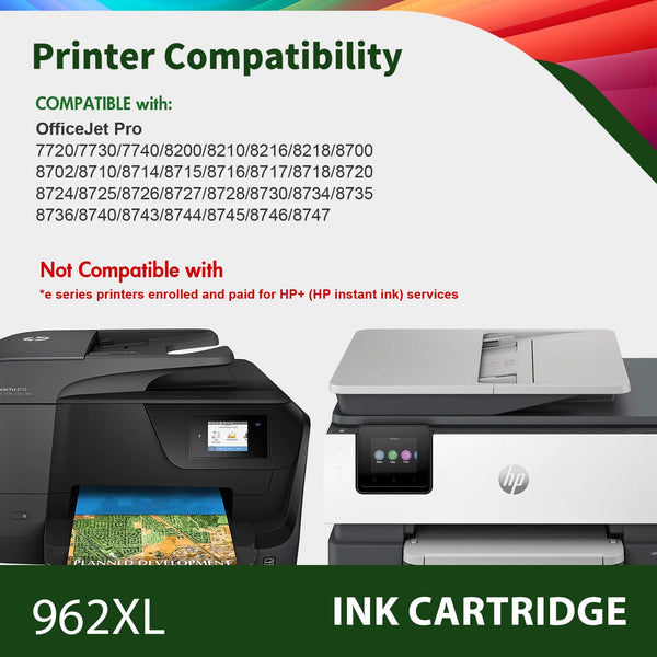 - ?Compatible Printers: 962xl/962 ink cartridges combo pack compatible for *e series printers which Never enrolled and paid for HP+ -HP instant ink) services, such as OfficeJet Pro 9010e 9012e 9014e 9015e 9018e 9019e 9020e 9022e 9025e 9028e Printers