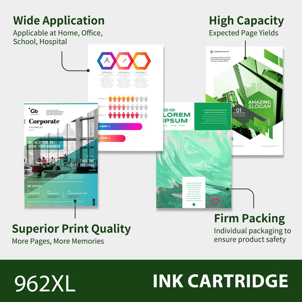 - ??High Page Yield: Print more paged with X-Large capacity. It yields up to 2,000 pages for each 962XL Black Ink and 1,600 pages for each 962XL Color Ink at 5% coverage -A4/letter)