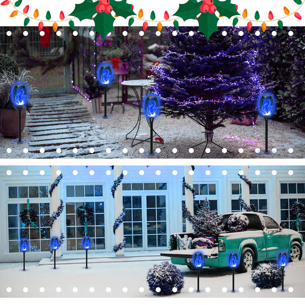 CATGOOD Waterproof LED Flickering Flame Solar Lights, Blue (12 Pack)