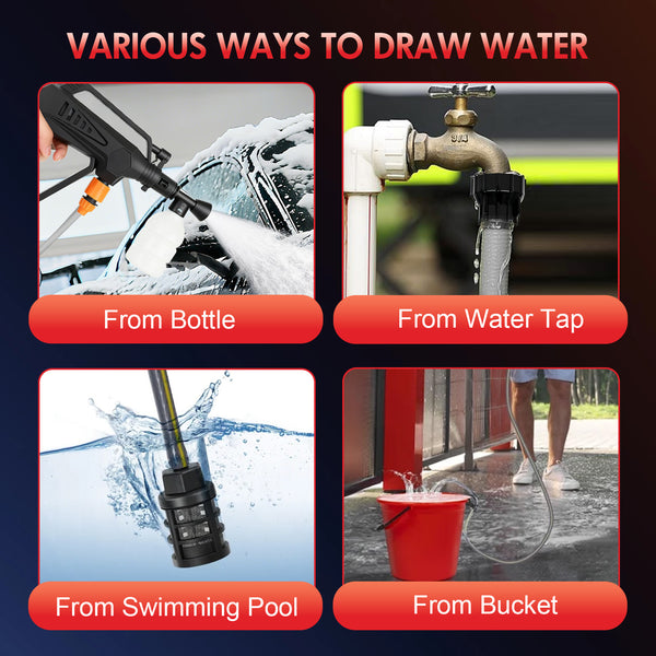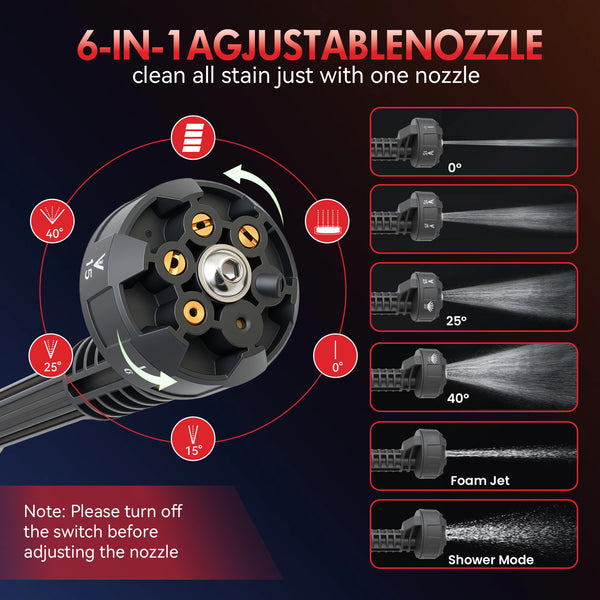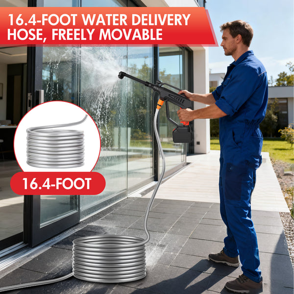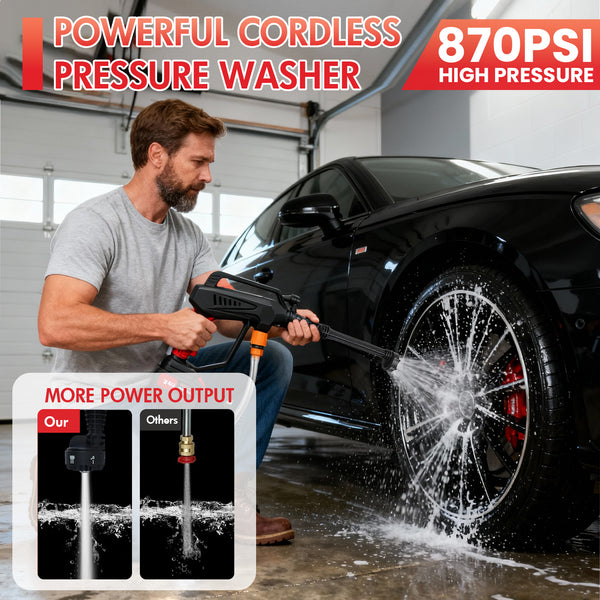 Say goodbye to messy cleaning and embrace the era of cordless freedom! This portable pressure washer is your all-in-one cleaning companion.Powered by a robust pure copper brushless motor with 50% more power, it delivers strong performance and comes with a 6000mAh large-capacity battery for up to 2 hours of continuous runtime.