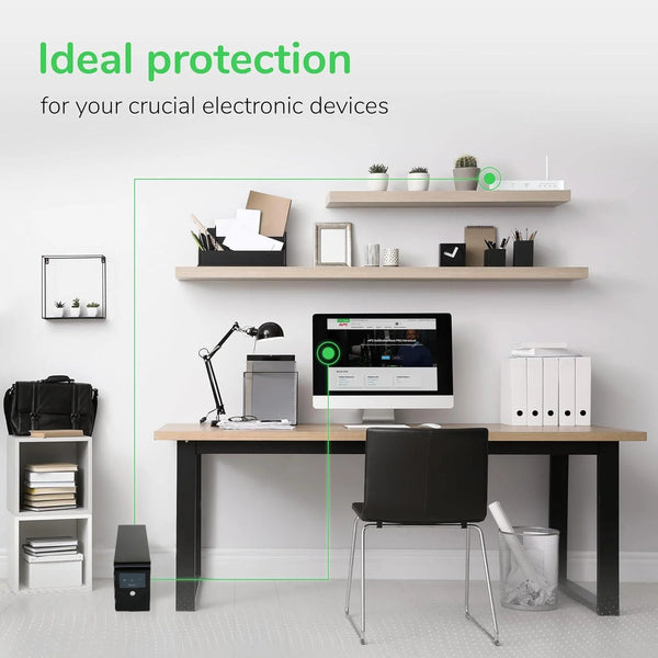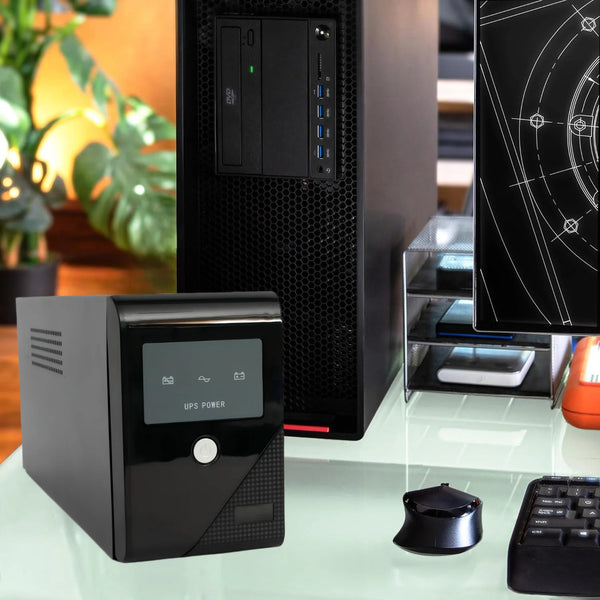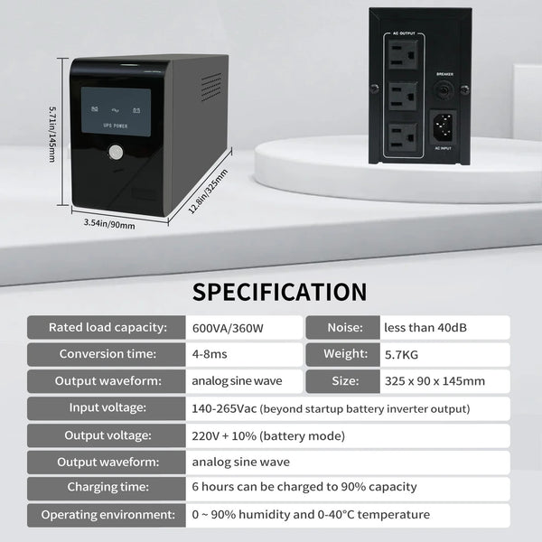 Description: This high-end backup UPS power supply combines power outage protection and intelligent voltage regulation. It instantly switches to battery power during outages or voltage fluctuations, ensuring the safety of your equipment. With a wide input voltage range and precise automatic regulation, it delivers stable 220V10% power to your devices. Built with imported precision components and integrated circuit design, it offers excellent performance and wide compatibility, suitable for both office and home appliances. The built-in surge protection provides peace of mind even during thunderstorms. Energy-efficient with long battery life, it helps reduce energy costs.